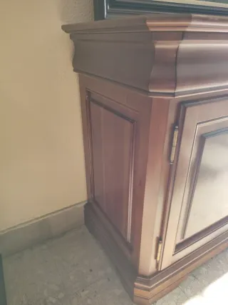 perfecto estado, se puede vender por separado es madera y en perfecto estado y va a juego que en la foto parece diferente color pero es conjunto . Mueble de la TV = 80 Vitrina = 60