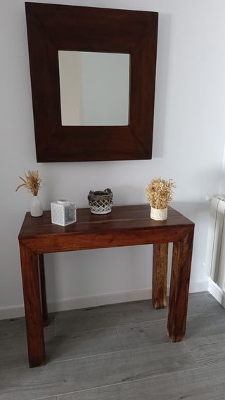 Mesa recibidor y espejo madera