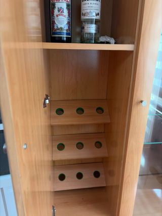 Mueble botellero madera y cristal espejo de fondo