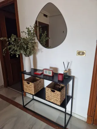 Conjunto de recibidor y espejo con estructura metálica negra. - El espejo tiene un diseño orgánico (67*60)