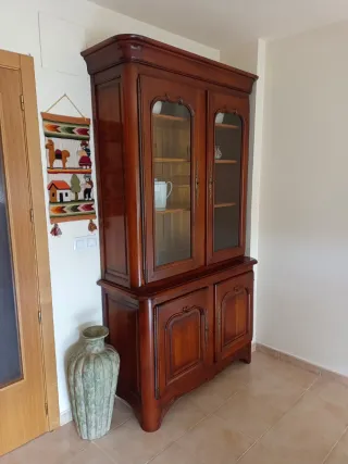 Alacena de madera cerezo con vitrina