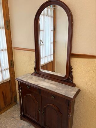 Mueble recibidor con espejo y mármol