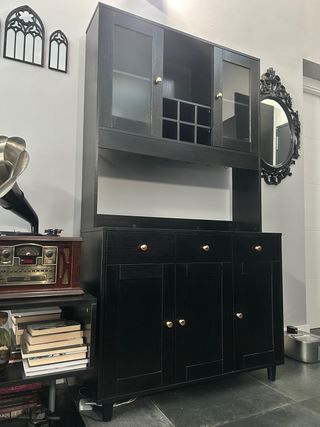 Alacena Negra con Puertas de Cristal