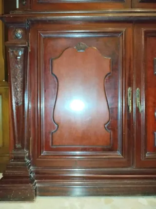 Aparador de madera, se puede ver la calidad sin problema. Poco uso, dos cajones grandes y dos puertas. Forma parte de un conjunto de vitrina y mesa que se puede comprar todo a la vez, puedes verlo en mi perfil de Wallapop