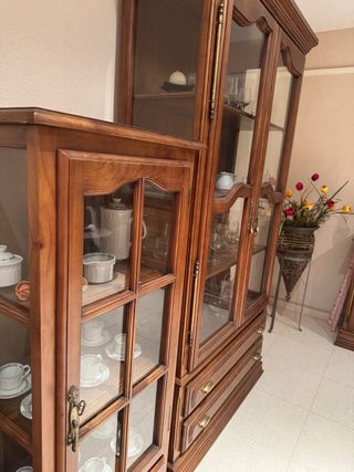 Aparador de madera con vitrina