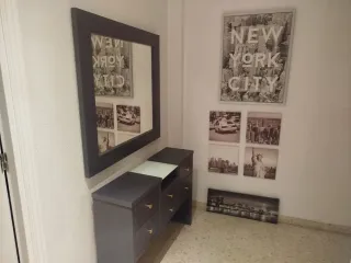 Mueble recibidor con espejo y cuadros NY