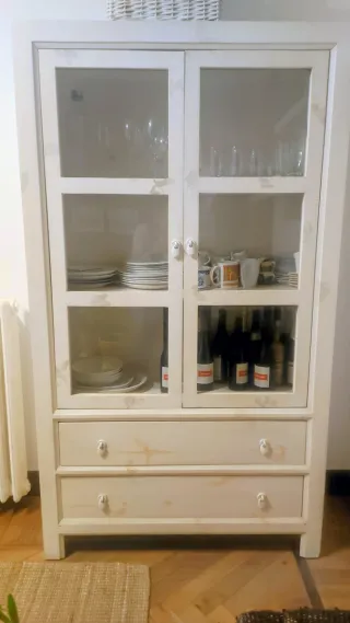 Mueble macizo con baldas, puertas de cristal. En perfecto estado. No desmontable. Recogida y transporte a cargo del comprador. Está en Irún. Se vende sin los objetos del interior. Precio: 350€ Ver mueble complementario en mi perfil.