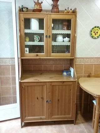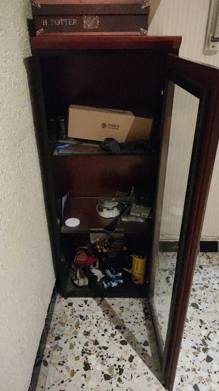 Mueble vitrina de madera con dos puertas acristaladas y cajones inferiores. - Diseño elegante con detalles en madera. - Dos puertas superiores con cristal. - Dos cajones en la parte inferior. - Lo tengo desmontado y embalado Medidas de cada módulo 40x50 de ancho y misma profundidad. Altura de los módulos 2,34 metros.