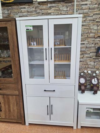 Elegante vitrina de madera con puertas de cristal para exhibir tus objetos. - Diseño clásico y funcional. - Estantes interiores para organizar. - Tirador metálico decorativo.