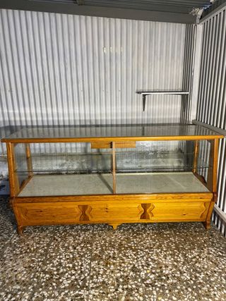 Mostrador tipo vitrina con estructura de aluminio y paneles de cristal. Con 3 alturas MEDIDAS LARGO:2,25 metros Ancho:0.50 metros Alto :1 metro --2 cierres de seguridad con llave - Diseño moderno y elegante. - Amplio espacio de exposición. - Puertas correderas de cristal.