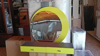 Conjunto de mueble recibidor con espejo. - Mueble de madera con cajones. - Espejo con marco de madera- Ancho 85cm y largo 180cm