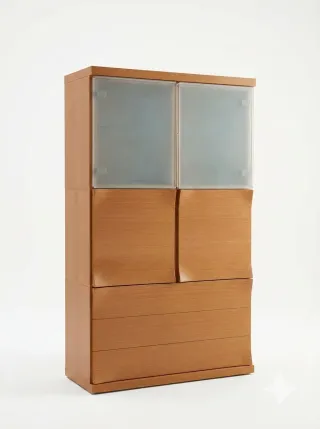 Elegante vitrina de madera con puertas de cristal, ideal para exhibir tu cristalería. - Estructura principal de madera. - Puertas de cristal transparente.