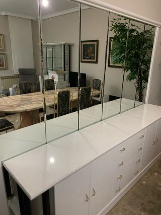 *DISPONIBLE HASTA FINALES ENERO* En venta mueble de salón clásico (tipo Boisserie) de madera, muy bien cuidado y en perfectas condiciones. Es un mueble robusto, elegante y con gran capacidad de almacenaje. Se divide en dos cuerpos para facilitar su transporte: • Cuerpo superior (Vitrina): Con puertas de cristal trabajadas y estantes ideales para cristalería o decoración. • Cuerpo inferior (Aparador): Más profundo, con cajones y armarios cerrados para almacenaje pesado. Medidas totales: • Alto: 210 cm • Ancho: 190 cm (parte inferior) / 140 cm (parte superior) • Fondo: 55 cm (parte inferior) / 35 cm (parte superior)