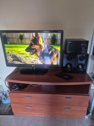 bufete lacaso en verde con cajones cuberteros y hueco para dvd o aparatos para la television, arriba agujero para pasar cables. muy bien acabado, mazizo, hecho por un carpintero. no es tipo Ikea