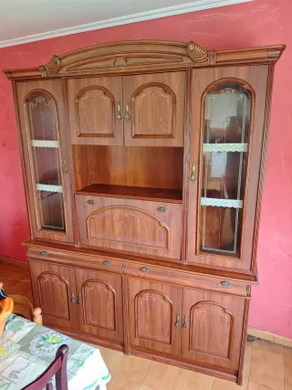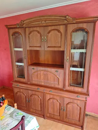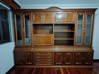 Mueble de salón de madera de castaño ,con vitrinas