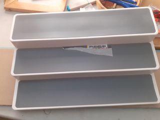 práctico organizador en 3 alturas; 》para q tenga a la vista todos los productos q almacena, es súper práctico. 》 cada peldaño alfombrilla antideslizante Las medidas están en.la fotos 36,5 ancho, 24 fondo Los escalones suben se 2cm a 9 cm de este modo pueden visibilizar perfectamente cada útil