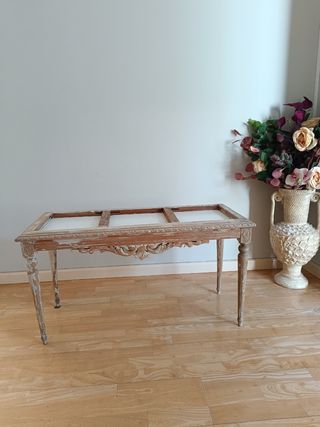 Mesa de centro vitrina. Para terminar de pintar o restaurar y ponerle la tapa encima (si pones cristal a medida haces una vitrina y si pones mármol o madera por ejemplo haces un doble fondo secreto ideal para guardar algo de valor). Venta por cambio de mobiliario y falta de tiempo para restaurar. Mesa mesita centro salón baja antigua . 96 x 37 x 52 aproximadamente.