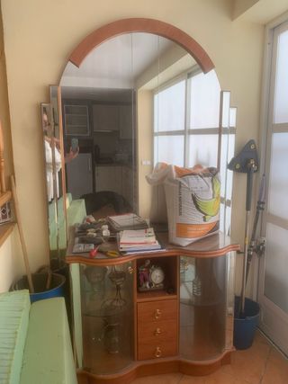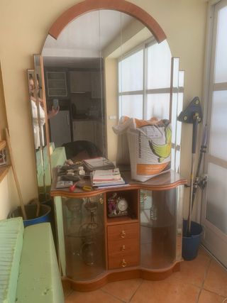 Por falta de espacio vendo elegante mueble bar estilo ingles Victoriano de madera maciza sin ningun rastro de carcoma.Con vitrina expositora de botellas y copas con 12 cristales biselados. Lleva una bandeja original en madera con asas de bronce. Con detalles de madera tallada. Medidas: altura 73cm diametro 50cm peso 15 kg. Posiblemente entrega personalmente sin envio. Para verlo sin compromiso estoy en la urbanizacion de Oliva Nova,muy facil de llegar y aparcar justo delante de casa,puedo quedar a cualquier hora.