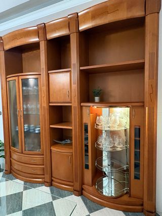 Mueble de comedor con un diseño elegante y funcional. - Estructura principal de madera. - Puertas y vitrinas con detalles en cristal. - Amplio espacio de almacenamiento. El mueble es a base de módulos, detrás del mueble está empanelado. Se puede vender por separado. Venta en persona. He puesto 1€ porque se puede vender por separado.