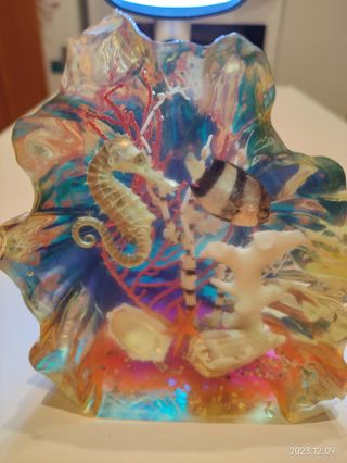 Típico adorno de vitrina de los años 70 hecho con animales marinos reales. Comprado en una tienda de (Sant Carles de) La Ràpita en 1979.
