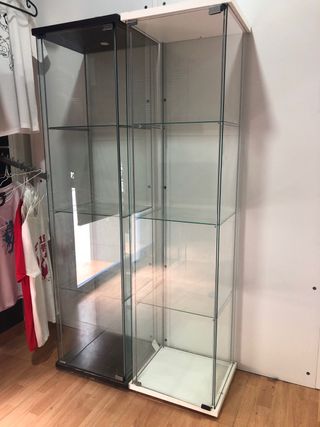 Se venden dos vitrinas de cristal de Ikea, una en color negro y otra en blanco. Son ideales para exponer objetos o almacenar. - Estructura de madera y cristal. - Diseño moderno y elegante.