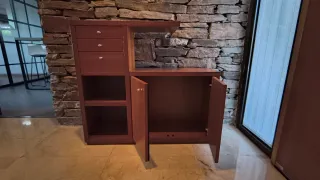 ¡Oportunidad! Vendo elegante mueble recibidor de la prestigiosa marca Nueva Línea. Es una pieza de diseño moderno y funcional, ideal para dar calidez y orden a la entrada de tu casa. Características principales: Material: Madera de cerezo de alta calidad con un acabado impecable. Almacenaje versátil: 3 cajones superiores (ideales para llaves, correspondencia, etc.). Módulo inferior con 2 puertas de gran capacidad. 2 estantes abiertos para decoración o libros. Superficie superior escalonada, perfecta para una lámpara o vaciabolsillos. Estado: Bien cuidado, sin importantes desperfectos. Robusto y duradero.