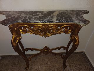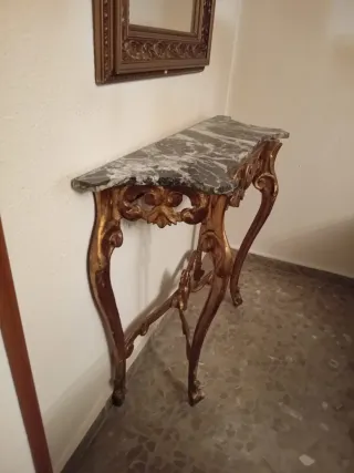 Elegante mueble recibidor con tapa de mármol y estructura de madera. - Diseño clásico y funcional. - Acabado en tonos beige y marrón. Escucho ofertas. Hay que venir a por él y desmontar. Gracias