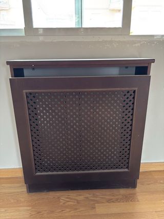 Cubreradiador de diseño clásico, ideal para cubrir radiadores y añadir un toque decorativo a tu hogar. - Estructura de madera. - Color marrón oscuro. 70cm