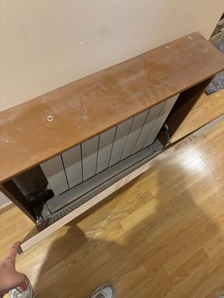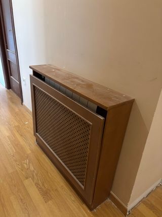 Cubreradiador de madera con un diseño elegante. - Acabado en tono marrón. - Material de madera.