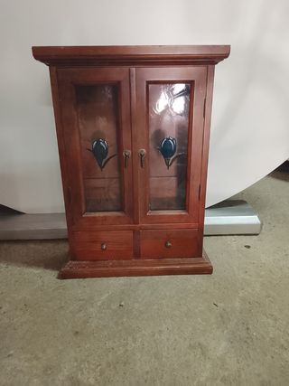 Mueble madera vintage con vitrina
