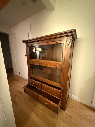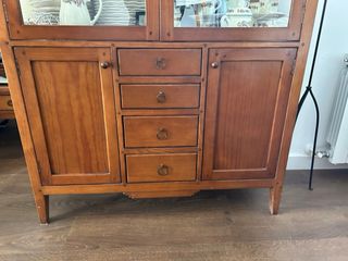 Mueble de madera maciza con vitrina y cajones