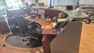 Recepción cristal y madera