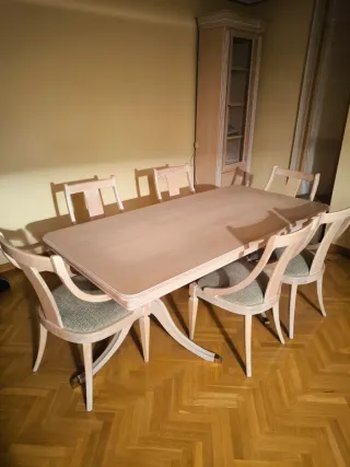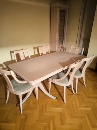 Mesa de comedor y sillas de madera con Aparador.