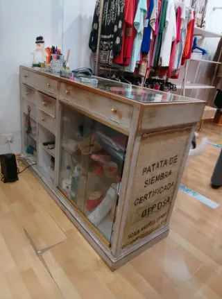 Mostrador tienda cristal y madera