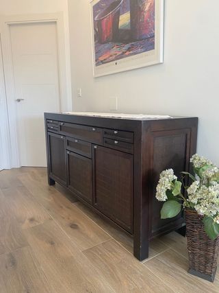 Aparador de madera clásico con repisa de marmol