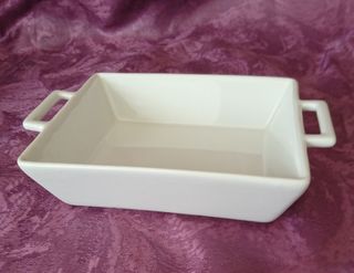 Cuenco rectangular con asas decolor blanco. Como nuevo. Multifuncional. Solo se ha usado como decoracion, siempre en vitrina.