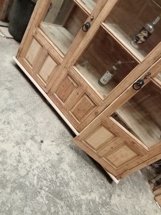 ANTIGUA VITRINA DE MUY BUENA MADERA DE PINO OREGON CON 2 PUERTAS. CON SUS BALDAS Y TRASERA DE GRUESA MADERA MACIZA. CON SU LLAVE Y FUNCIONANDO FUE TOTALMENTE DECAPADA AHORA ESTA EN SU MADERA NATURAL. LUEGO SE PUEDE PINTAR SESUN SE DESEE. CON PÁTINA Y PEQUEÑAS SEÑALES PERO TOTALMENTE COMPLETA, MUY ESTABLE Y SEGURA. SE DESMONTA Y MONTA MUY FÁCILMENTE TODA PARA LLEVAR Y O COLOCAR Y MIDE EN TOTAL DE ALTA 210 CM X 128 CM DE ANCHA Y 56 CM DE FONDO. SE PUEDE ENVIAR DESMONTADA PERO MUY FACIL VOLVER A MONTAR