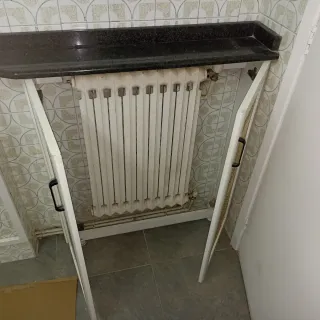 Elegante cubreradiador de madera, ideal para ocultar radiadores y añadir un toque de estilo a tu hogar. Tiene dos cajones para guardar objetos. Se encuentra en buen estado. - Dos cajones funcionales. - Diseño clásico y atemporal. - Acabado de madera pulida.