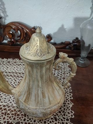 TETERA DE METAL DECORATIVA. EN TONOS DORADOS Y PLATEADO. MIDE 31 CM DE ALTO Y 27 CM DE ANCHO. PERFECTO PARA DECORAR UNA ENTRADA, HALL, RECIBIDOR, MUEBLE DE SALON, VITRINA, DESPACHO, BODEGA, BUHARDILLA, CAFETERÍA, BAR, TETERIA, ETC #decoracion, decorativo, deco, decorar #atrezo #tetera de metal #adorno #Regalo, regalar, detalle