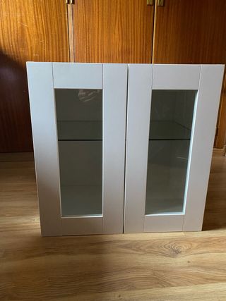 Mueble de ikea modelo “metod” con puertas modelo “savedaly” con una balda de cristal en perfecto estado para poner figuras, ropa, etc... Mide 60x60x38,5 cm.