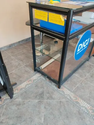 Mueble Mostrador Cristal y Metal Negro