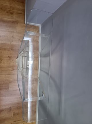Mueble mostrador con estructura de metal y superficie de cristal. - Diseño moderno y elegante. - Ideal para exhibición de productos. - Mostrador caja, ordenador, recepción, tienda -Diseño elegante y cristal de calidad - Balda cristal , cajón Medidas 131cm ancho x 56cm ancho x 92,5cm de alto Recogida en Alcobendas