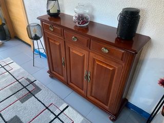 OFERTA! Elegante aparador de madera con un diseño clásico. - Tres cajones superiores con tiradores. - Tres puertas inferiores con tiradores ornamentados. - Patas redondeadas. - Mide 96 de largo por 75 de alto - Puede verse y recogerse en Bertamiráns
