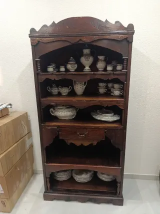 Elegante vitrina antigua alta de madera con cinco baldas para exhibir tus objetos. - Diseño clásico y funcional. - De madera, con 5 estanterías