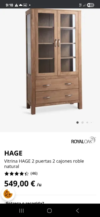 Vitrina de madera de roble con dos puertas acristaladas y dos cajones. - Diseño moderno y funcional. - Acabado natural.