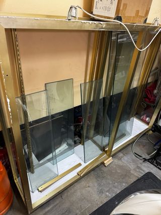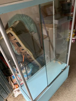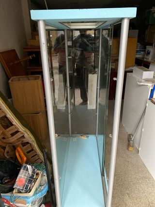 Vitrina expositora con estructura metálica y paneles de cristal. Disponible solo para recogida en Los Rosales (Sevilla). Se vende por cese de negocio. Medidas en las fotografias.