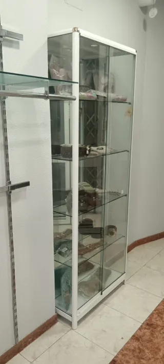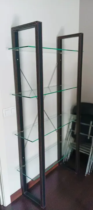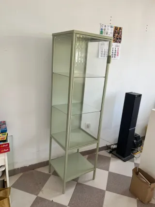 Vitrinas de Ikea, con estructura de metal y estantes de cristal. Sin de los modelos antiguos y ya no se pueden comprar porque dejaron de venderlos Hay 2 , tienen todas sus baldas y 1 extra por si acaso No hago envíos, si la quieres tienes que venir a por ella Ideal para exhibir colecciones o decoraciones.