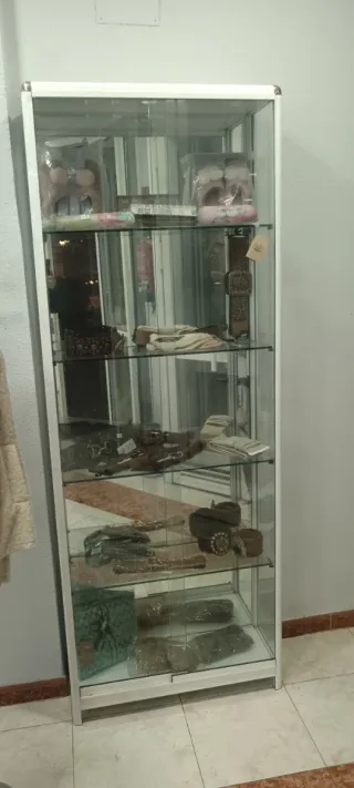 Mueble expositor de diseño moderno, ideal para exhibir tus objetos favoritos. Completamente nuevo. - Estructura de metal fuerte, 3 baldas en cristal.solo recogida a domicilio. - Puertas y laterales de cristal. - Detalles en metal.