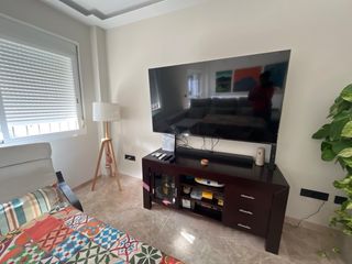 Conjunto de muebles para salón, ideal para complementar tu espacio. - Vitrina con puertas de cristal y estantes interiores. 205cm de alto x 45,5cm de profundidad x 90,5cm de ancho - Mueble para TV. 55 cm de profundidad x 91cm de ancho x 75,5cm de alto - Mesa auxiliar. 70cm de ancho x 110 de largo x 46,5cm de alto sin abrir. Precio conjunto. No se vende por separado. Recogida en Sevilla.