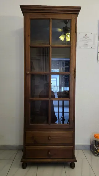 Vitrina de madera con puerta de cristal y un cajón. Muy practico - Diseño clásico y elegante. - Ideal para exhibir colecciones o decoraciones.